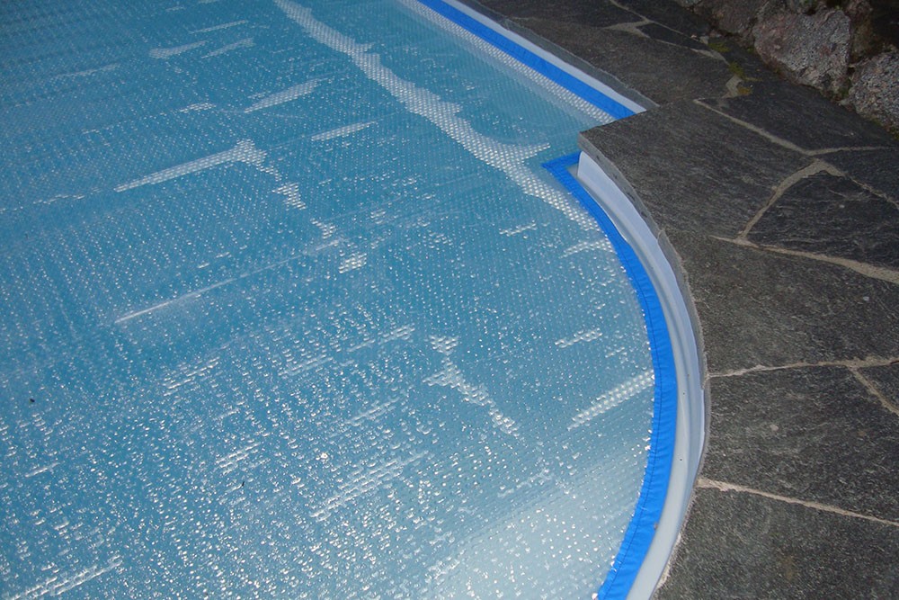 Las mantas térmicas son conocidas como cubiertas solares. El aspecto de las mismas es el de un plástico de burbujas que flota sobre la piscina. Hay que tener en cuenta que el 75% de la pérdida de calor de una piscina se debe a la evaporación del agua y que al comprar una de estas mantas se minimiza la pérdida de calor porque actúan como una barrera entre el agua de la piscina y el aire. De hecho, puede reducir los gastos de calefacción hasta un 70%, dependiendo del modelo. Así mismo, hay que destacar que las mantas térmicas también pueden aumentar la temperatura dejando pasar los rayos del sol para que calienten el agua, pero impidiendo que el calor salga en forma de evaporación. Por lo general, suele percibirse que la temperatura de la superficie de la piscina es más caliente que la del fondo, ahora bien, conforme el agua se va moviendo esta se va homogenizando.