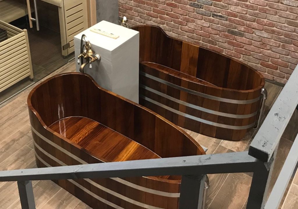 Bañera de madera BWL 167 x 73 x 70(Alt)cm de alerce , con revestimiento transparente y sellado higiénico. Si se utiliza como bañera de ducha privada o publica.