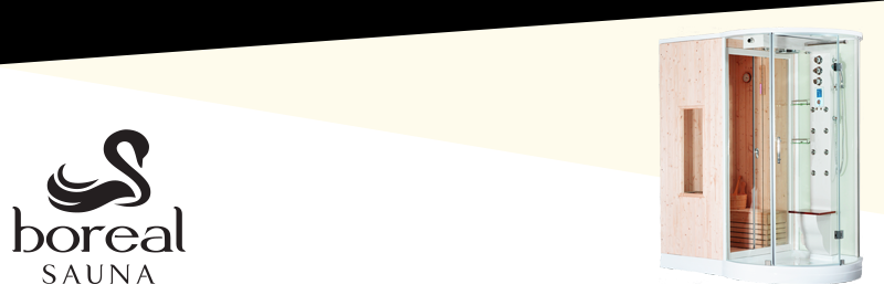La cabina hidrosauna Boreal SH175I combina la ducha de vapor con la sauna finlandesa.
