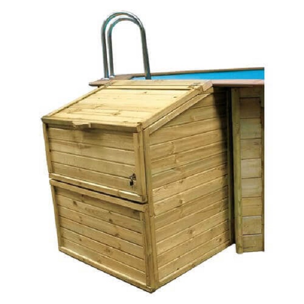 La caseta de madera de GRE para la depuradora es un cajón resistente de calidad para guardar todo el sistema de filtración y de desinfección ( clorador salino, regulador de ph, producto químico e incluso limpia fondos ). La madera está tratada en autoclave Clase III de pino Silvestre que le confiere durabilidad y resistencia.