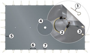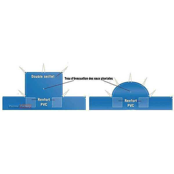 Concebida y fabricada conforme a la normativa de seguridad NF 90-308. El cobertor Skin cold se ve beneficiado de una excelente relación Calidad/Precio. Con su sistema de enganche de dobles ojales con tensores y pitones fijos aportan una tensión perfecta una vez instalada.