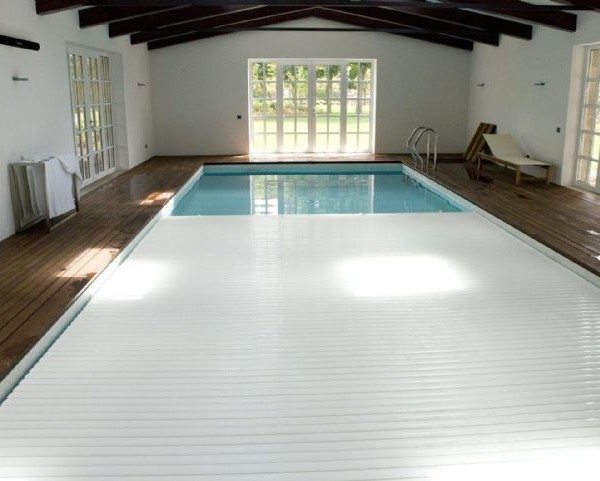 La cubierta de persiana Formosa Pertenece a la sección de cubiertas de láminas de PVC o de Policarbonato que se enrollan y se desenrollan de forma completamente automática. Disponen de un motor eléctrico que lleva a cabo la tarea de recogida y puesta de la lamas sobre la superficie del agua de la piscina. Destaca especialmente por incluir un cofre en seco en la parte trasera de la piscina que hace que el rollo quede oculto. Cabe destacar que este modelo de cubierta automática se coloca principalmente en piscinas de obra nueva.