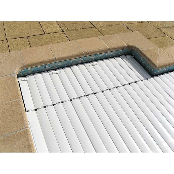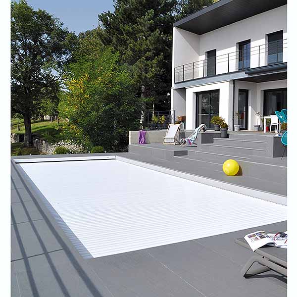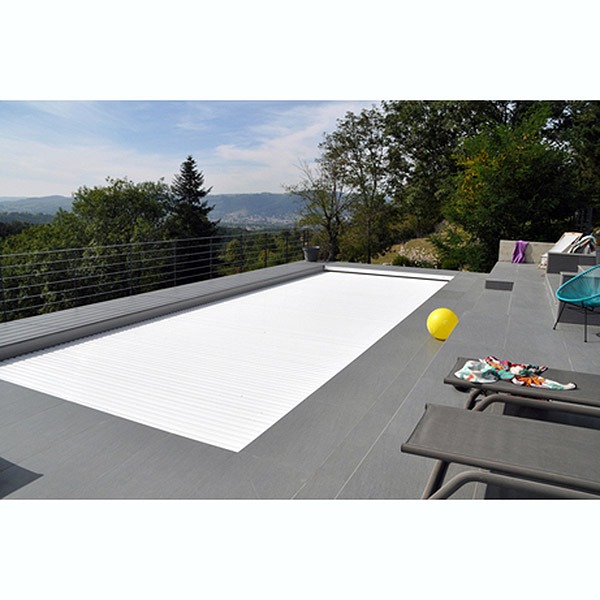 Para empezar los materiales utilizados en la cubierta de persiana sumergida automática IMM’Box resisten al envejecimiento por la corrosión, al contacto al cloro y por los rayos U.V. Las laminas de P.V.C están hechas individualmente y con los mejores acabados del mercado.