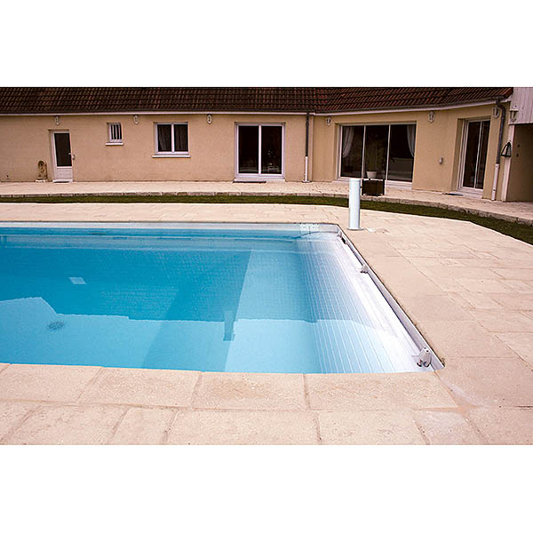 El modelo de cubierta de persiana sumergida automática Zita nos permite enrollar y desenrollar la cubierta de forma 100% automática gracias a un mecanismo de carrera elaborado. Esta cubierta es valida únicamente para vasos de piscinas rectangulares o cuadrados de 1,20m de profundidad con fondo llano, sin escalera exterior y con ángulos de 200mm como máximo.