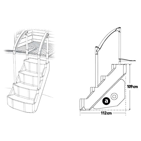 Se adapta a piscinas que van desde 1,20m hasta 1,32m de altura. No requieren de lastrado añadido ya que esta escalera posee su propio recipiente de lastrado. La escalera amovible Tokio es ideal para facilitar el acceso y la salida de la piscina de las personas por lo general. Las personas mayores sienten seguridad y confianza, así que se ven invitadas a tomar el baño más a menudo. Además crea mucha tranquilidad a los niños que aprenden a nadar ya que disponen de una salida cómoda y práctica a la vez que segura. La escalera sin obra Tokio también ofrece la posibilidad de sentarse en el agua y de descansar del esfuerzo sin salir de la piscina y tomar el sol refrescándose en el agua. Finalmente la escalera Tokio será el salvador de nuestras mascotas en caso de caída a la piscina.