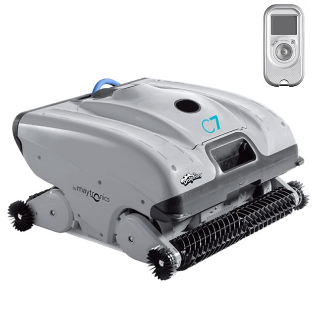 El limpiafondos Dolphin C7 es un robot de limpieza automático y eléctrico para piscinas del grupo Maytronics. Está indicado para piscinas de gran tamaño y para el mantenimiento de piscinas de hasta 30 metro de longitud. Es ideal por su alta resistencia y por la durabilidad de sus componentes, es por tanto un aparato recomendado para ser usado en piscinas públicas y comerciales.