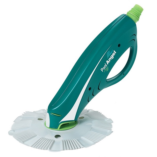 El Pool Angel se puede utilizar en cualquier tipo de revestimiento interior de piscina (Lámina armada de PVC, liner, poliéster o gresite). Limpia el fondo de la piscina y está fabricado en PVC. Incluye 10 metros de mangueras (se puede usar indistintamente en piscinas elevadas y en piscinas de obra).