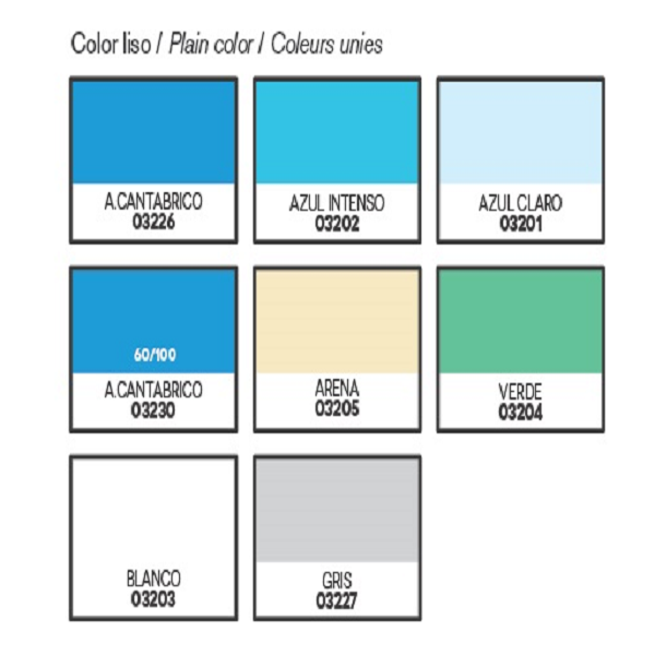 El liner de color liso a elegir para piscina 3,60m x 1,20m de altura es ideal por su calidad y por las posibilidades en cuanto a los colores. Estos revestimiento de estanqueidad se fabrican termo-soldando las piezas en fábrica con soldadura de alta frecuencia.