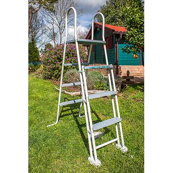 El modelo Finlandia circular de GRE incluye en el kit piscina la escalera de seguridad de 3 peldaños en la entrada y otros 3 peldaños en la salida con una plataforma superior (impide el acceso a los menores dando la opción de elevar los peldaños de la parte externa de la escalera). El grupo de depuración está formado por un filtro de arena de 4m3/hora con válvula selectora superior + una bomba filtrante potente y todo el sistema de tuberías flexibles con sus respectivos adaptadores de conexión.