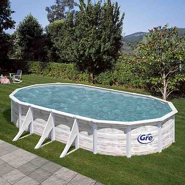 La piscina Finlandia ovalada es una novedad de GRE para 2021. El aspecto de la madera envejecida dota a la piscina de una apariencia muy singular. Esta piscina exclusiva de GRE es ideal por que se puede colocar en casi cualquier jardín. Dispone de un sistema de refuerzos con postes en los laterales que permiten una instalación sencilla y sobre todo segura. Se debe preparar el terreno con arena tamizada para dejarlo liso, firme y nivelado.