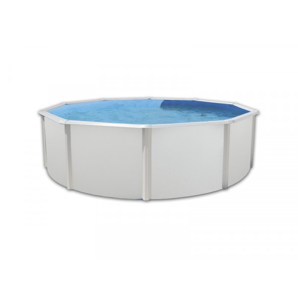 La piscina QP circular de TOI es una piscina elevada de acero de chapa lacada en color blanco con forma redonda disponible en 3 medidas diferentes (3,50m de diámetro x 1,20m de altura / 4,60m de diámetro x 1,20m de altura / 5,50m de diámetro x 0,90m de altura). El kit piscina incluye todos los elementos y componentes necesarios para su uso (estructura de acero, escalera de acceso, liner de PVC con tratamiento anti-UV de color azul, depuradora de arena con tuberías, skimer, impulsor y carga filtrante). La piscina QP circular de TOI se puede colocar en cualquier tipo y forma jardín.