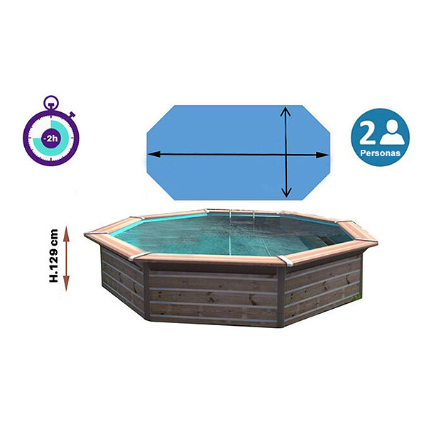 La piscina de madera Cleofás proporciona un espacio de bienestar de altas prestaciones. Esta piscina se compone de 8 laterales iguales y sus paneles (estructura) vienen ya fabricados/pre montados siendo fácil de instalar y sin apenas requerir de herramientas.