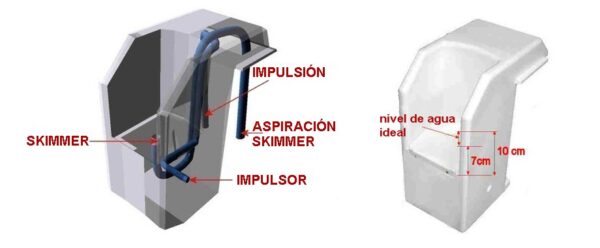 Piscina 100% estanca con el monobloque de filtración. Se conecta mediante tuberías a la depuradora con bomba + filtro de arena:
