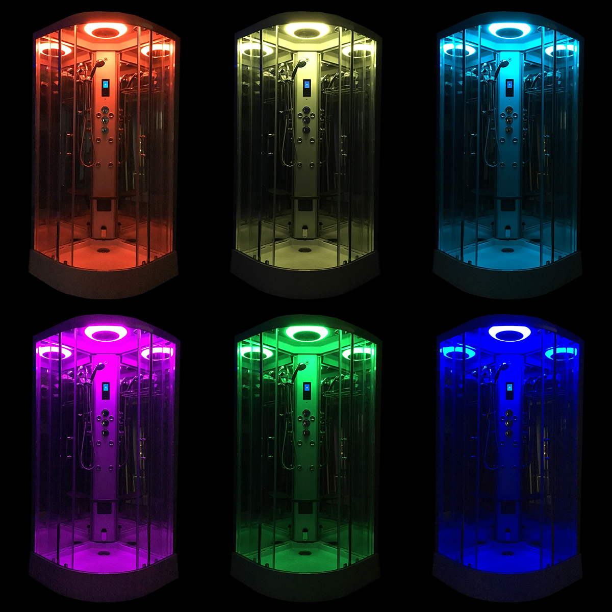 - Iluminación interna para cromoterapia : espectro de 7 colores, ya sea fijo o con desplazamiento