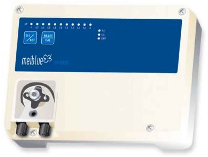 El regulador de pH Meiblue esta asistido por microprocesador para la medición, control y dosificación del nivel de pH.